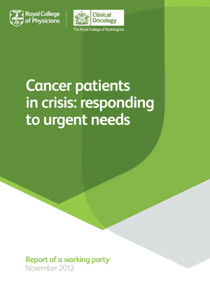 A joint Royal College of Physicians (RCP)/The Royal College of Radiologists (RCR) working party was established in 2010 to review the experiences of patients with cancer who become acutely unwell and need urgent help and advice; to identify the obstacles to good care across all care settings; and to consider how both patient experience and the outcome of care might be improved where indicated.