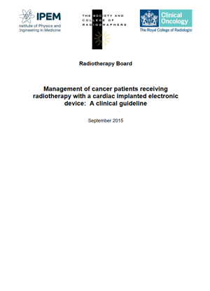 The number of cancer patients with cardiac implantable electronic devices (CIEDs) receiving radiotherapy is increasing. 2-4 There are two main categories of CIED: permanent pacemakers and implantable cardioverter defibrillators (ICDs). Electronic monitoring devices (eg implantable loop recorders) have no direct connection to the heart and are not covered in this guideline. Most permanent pacemakers (referred to as ‘pacemakers’ in this document) are implanted in patients who either have inappropriate bradycardia, or who are at