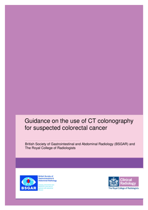 The number of CT colonography examinations is increasing in the UK for suspected colon cancer, having now replaced the barium enema as the alternative imaging investigation of choice when colonoscopy is incomplete or the patient is considered unsuitable for colonoscopy. The British Society of Gastrointestinal and Abdominal Radiology (BSGAR) and The Royal College of Radiologists have produced this document to set out the key considerations in using CT colonography for suspected colorectal cancer as well as important guidance on all aspects of establishing a high-quality CT colonography service.