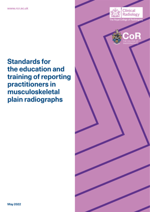 This joint publication from the Royal College of Radiologists (RCR) and College of Radiographers (CoR) defines the education and training required for all members of the multi-professional team who report MSK plain radiographs. This includes the learning outcomes to be achieved, minimum requirements for assessment, and recommendations on how education programmes for MSK plain film reporters should be designed and structured.